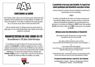 Le collectif AAA (Alliance pour des alternatives à l'austérité) convie à une manifestation de rue ce lundi 01/12.