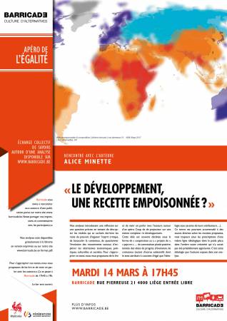 Nos analyses introduisent une réflexion sur une question précise en tentant de décrypter les réalités qui se cachent derrière les mots du pouvoir, d’aiguiser l’esprit critique, de bousculer le consensus, de questionner l’évolution des mouvements sociaux, d’explorer les alternatives économiques, politiques, culturelles et sociales. Pour s’approprier ce texte, nous vous proposons de le lire et de venir en parler avec l’auteure et ses invité.e.s : Alice Minette (l'auteure), Lucienne Strivay, chargée de cours en anthropologie de la nature et médiation culturelle à la Faculté de Philosophie et Lettres de l’ULg & Frédéric Thomas, Docteur en science politique, chargé d’études au Centre tricontinental - Cetri.