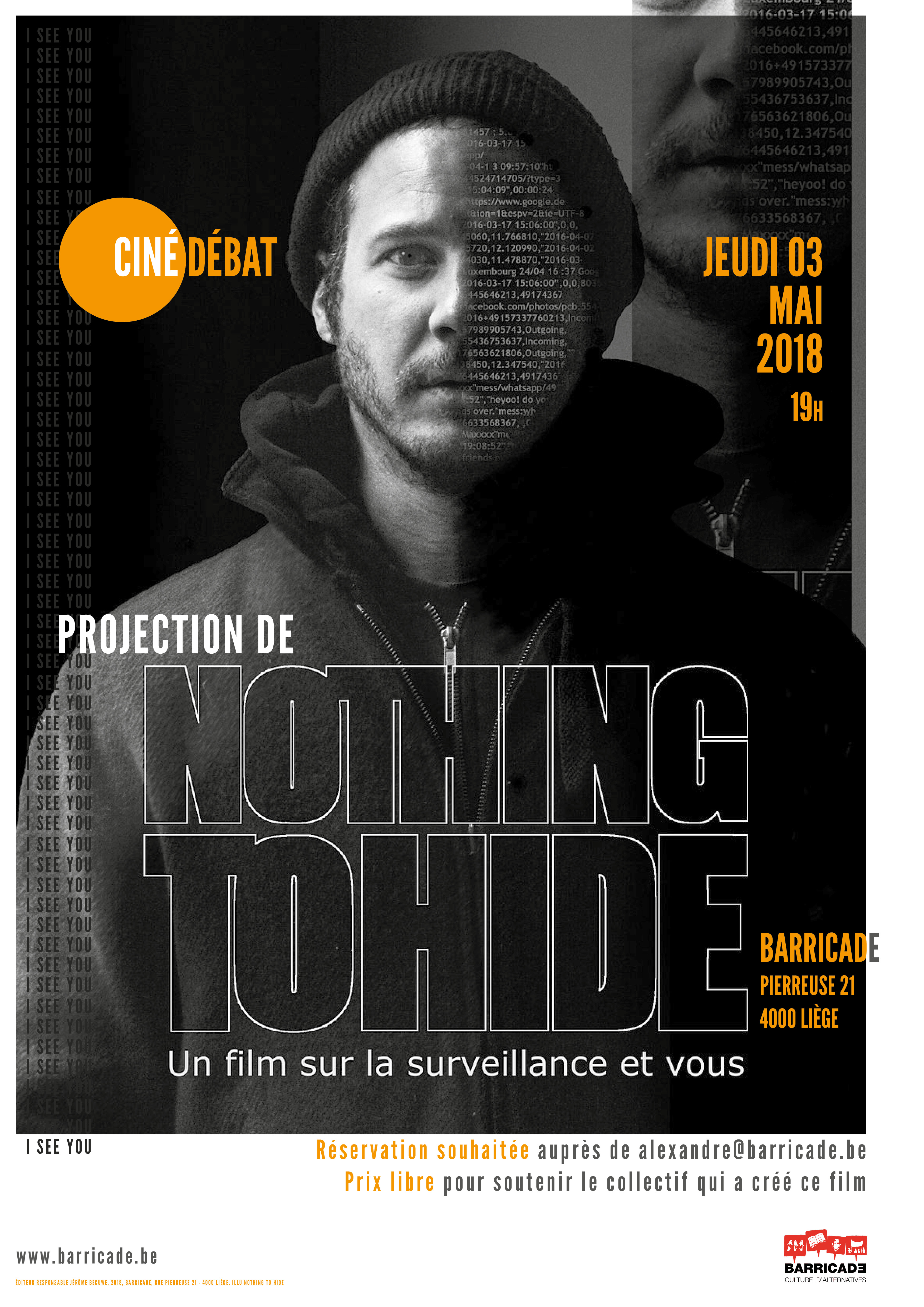 Ciné-Débat autour de la surveillance de masse et des notions de vies privées à travers l’argument de « Je n’ai rien à cacher ».