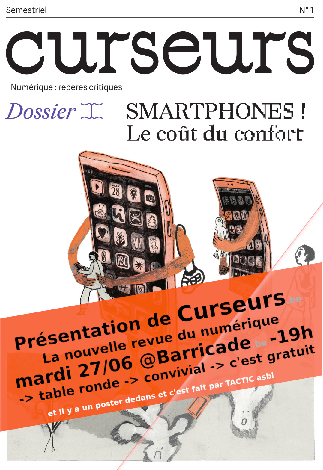 Un journal né à Bruxelles, intégralement réalisé en logiciels libres et rédigé par une équipe de bénévoles motivé·e·s. Curseurs se veut un espace de sensibilisation, de débat, d'information et d'analyse des technologies numériques et de ses enjeux politiques et sociaux. Il est gratuit et distribué à 5000 exemplaires, ce sera l'occasion de repartir avec le vôtre !