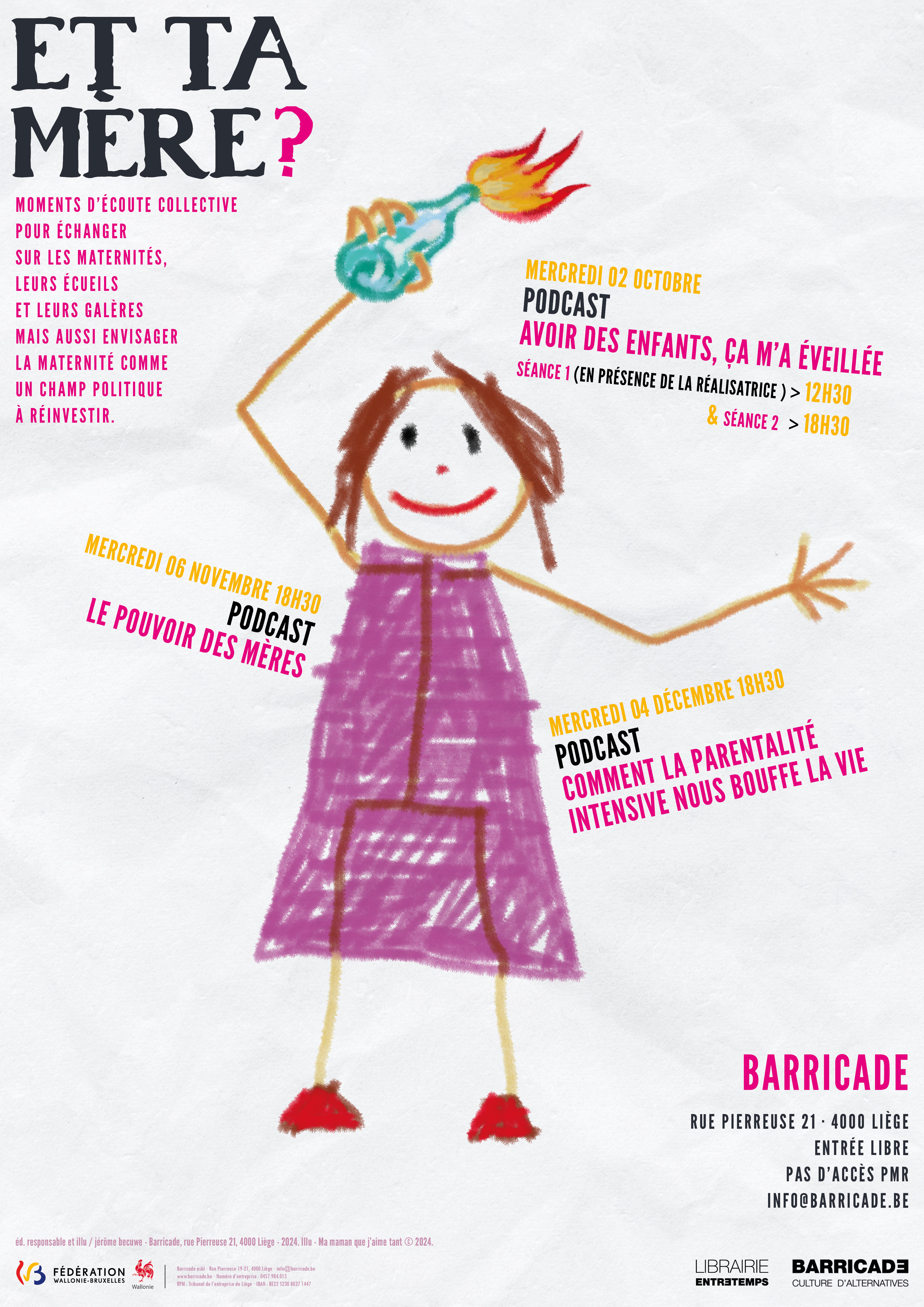 D'autres écoutes de podcasts autour des questions de maternités/parentalités auront lieu le 6 novembre et le 4 décembre à 18h30 :